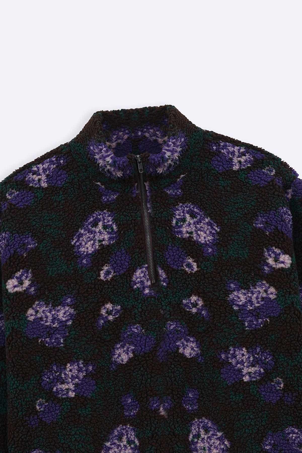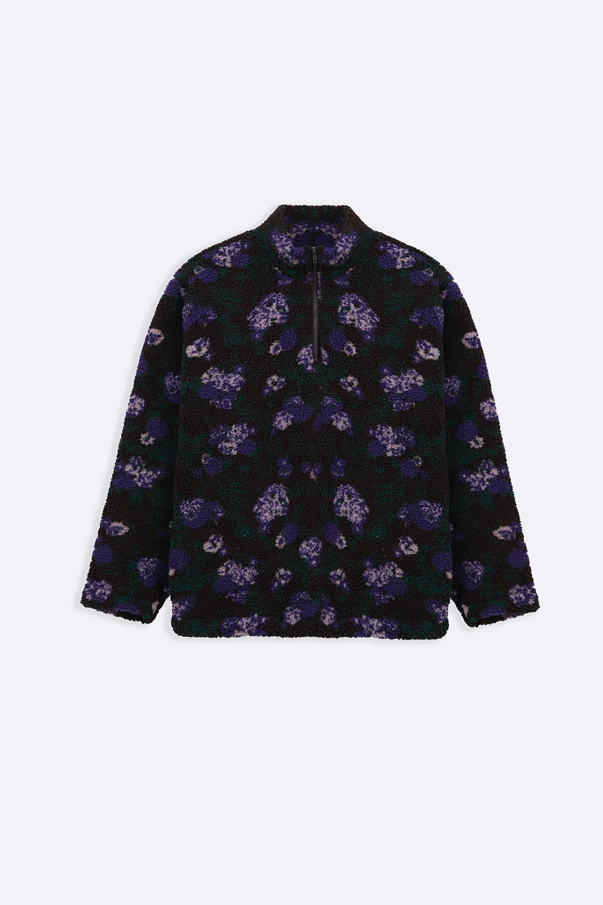 Design details: Relaxed-fit sherpa with full sleeves, pockets, a quarter-zip front, and a bungee-cord detail at the hem.