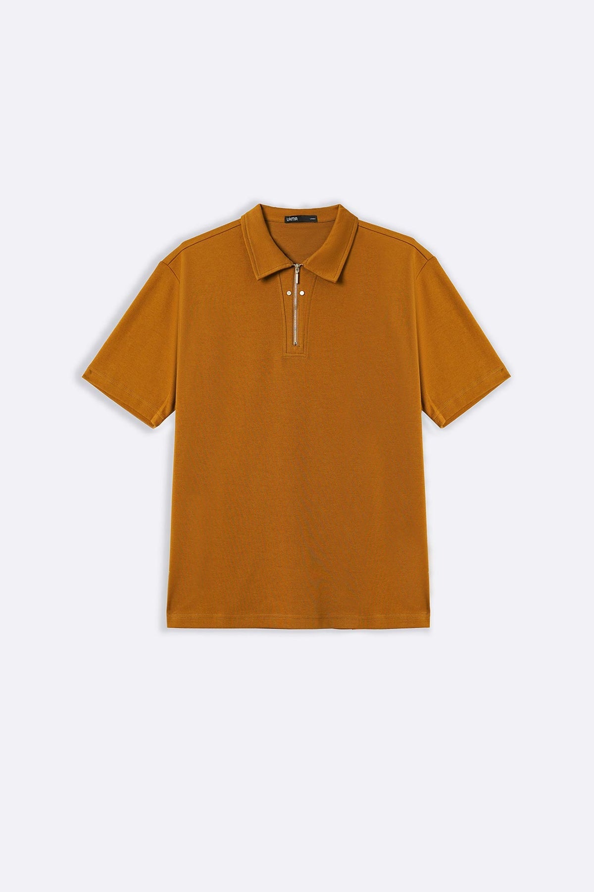 Design details: Collared knit polo shirt with front zip fastening and short sleeves.