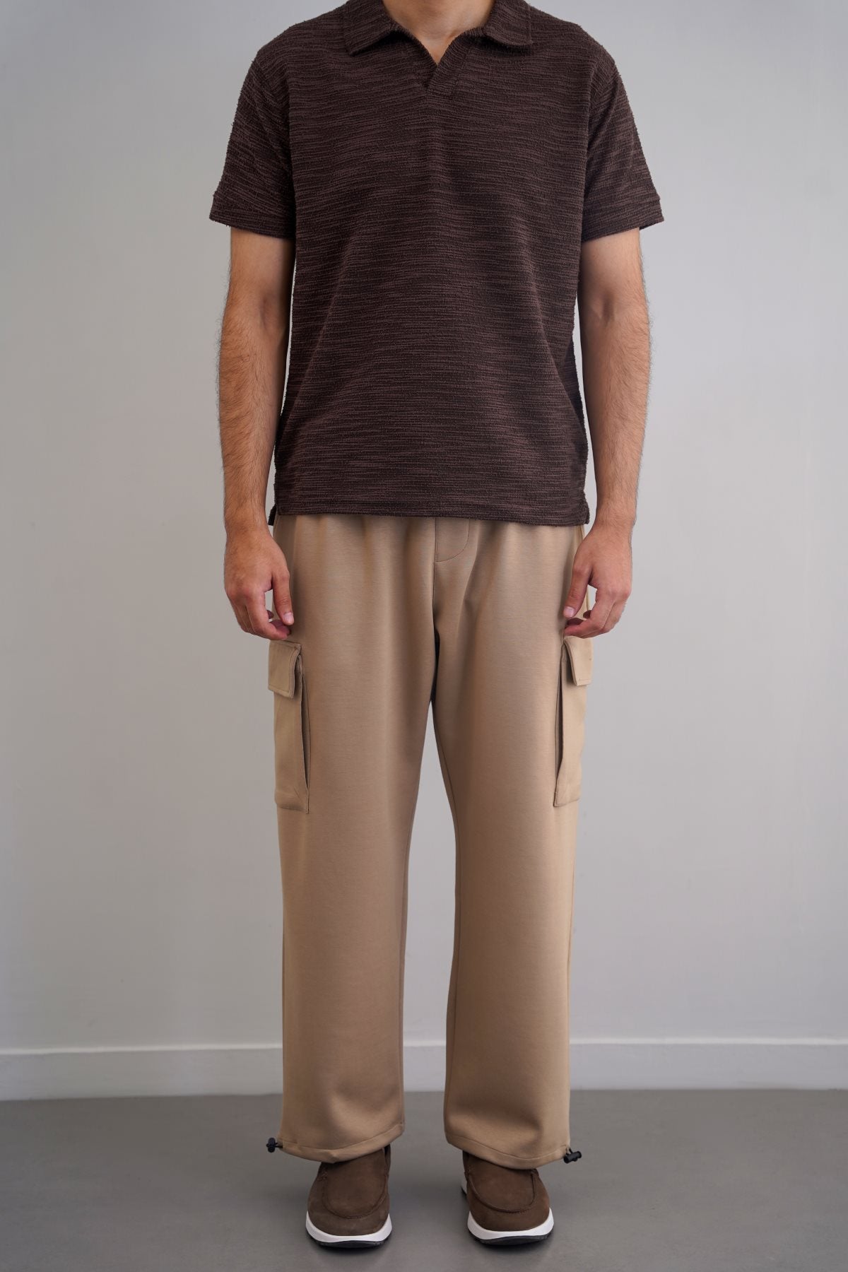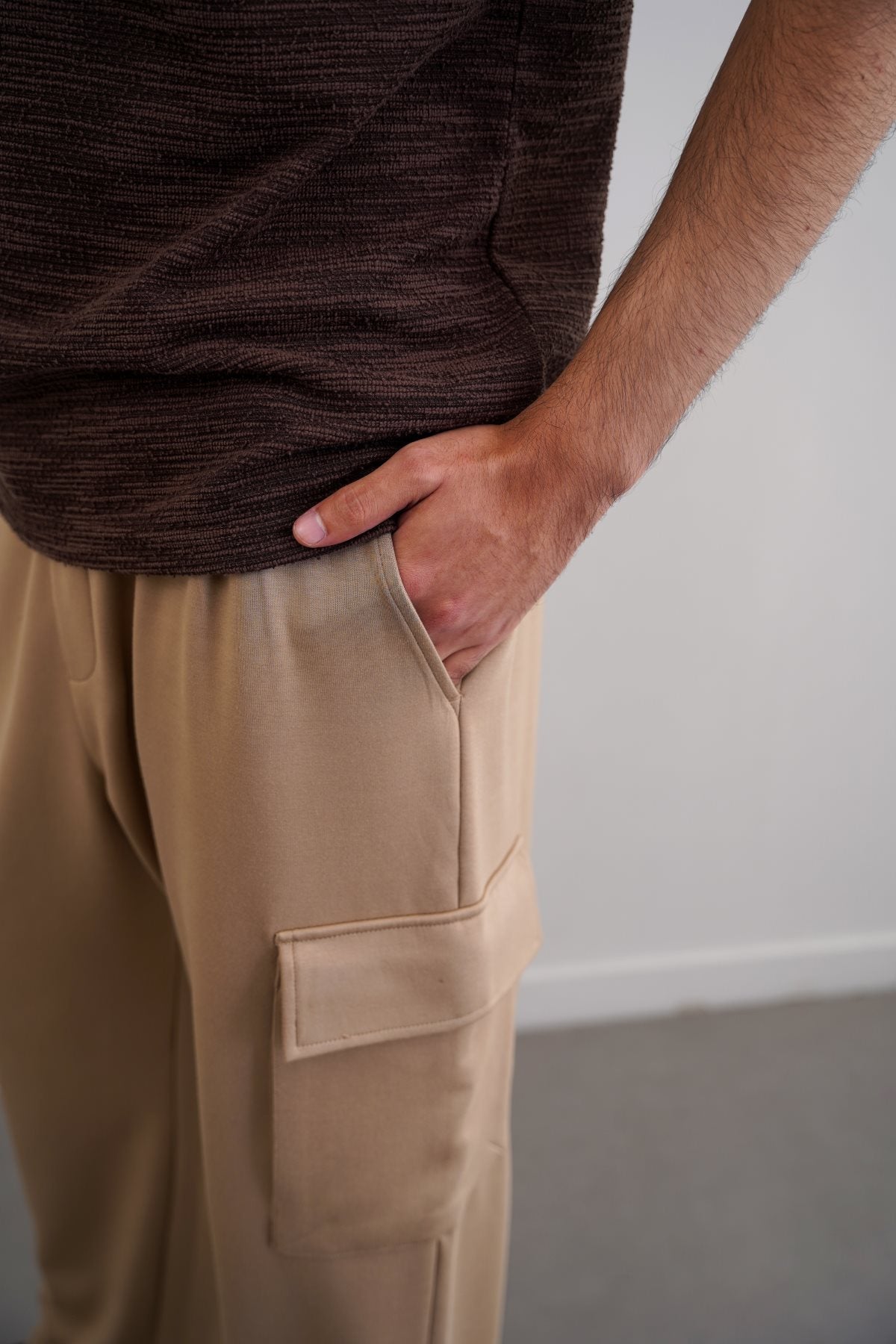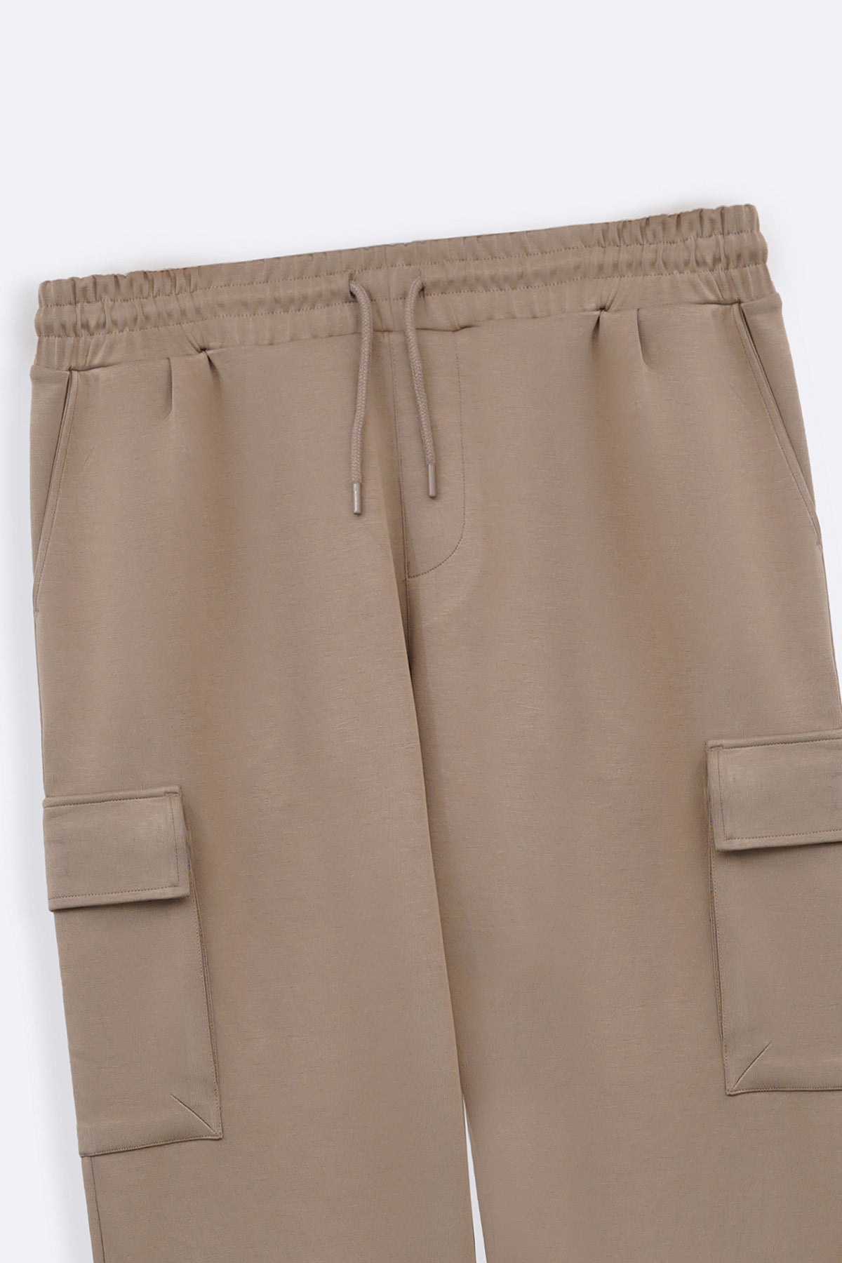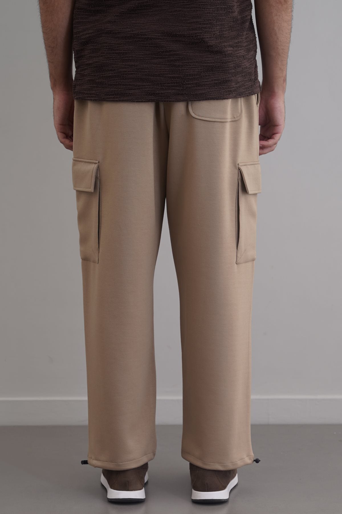Design details: Cargo trousers with an adjustable drawcord waist, a combination of side, back, and cargo pockets, and a faux fly detail along with bungee cord.