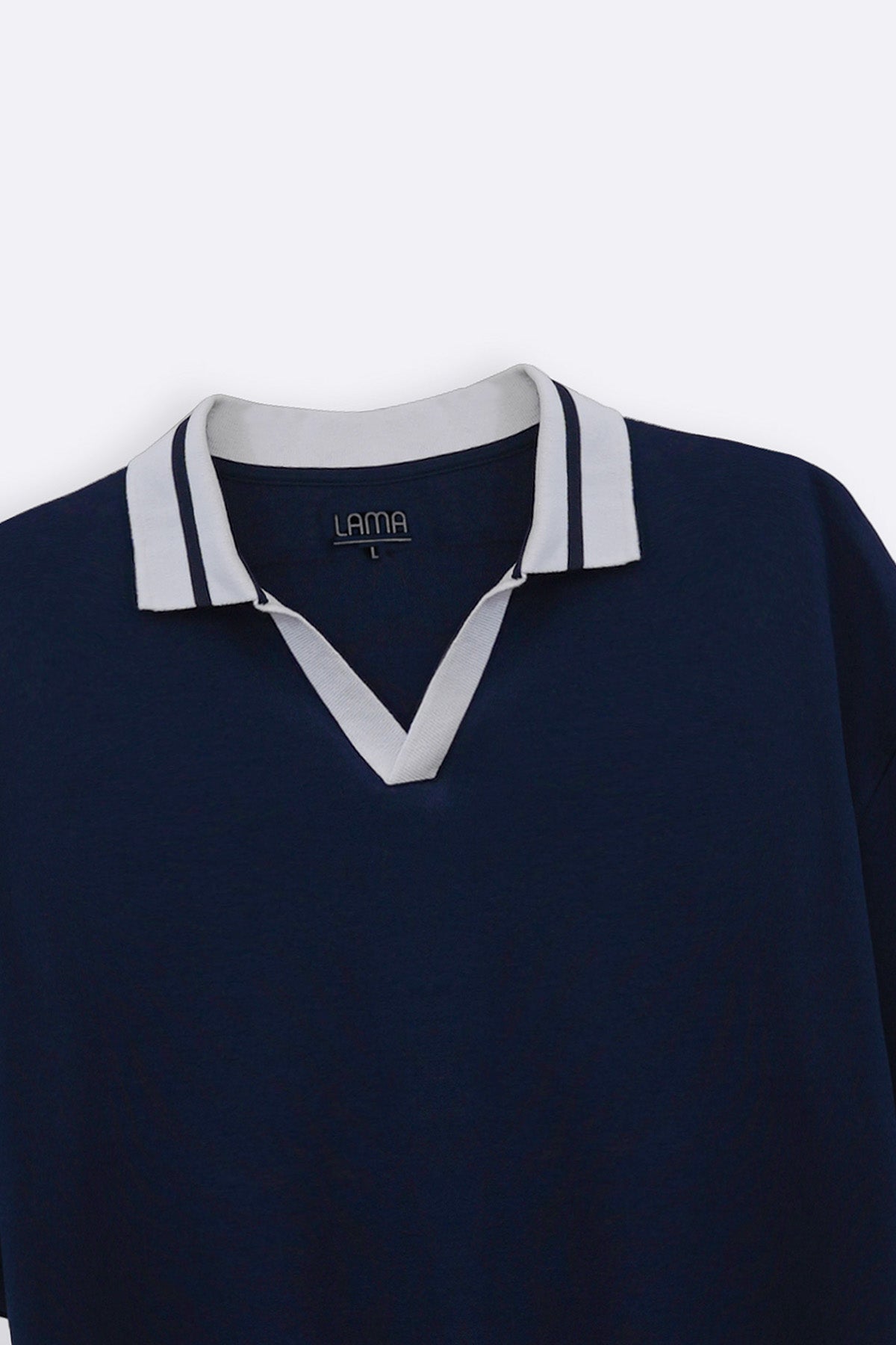 Design details: Short sleeved V-collared Polo along with ribbed collar, placket. Typography detail in the front.