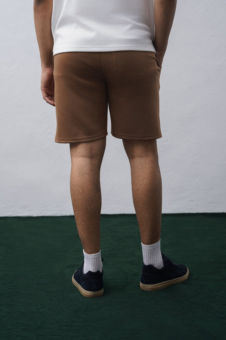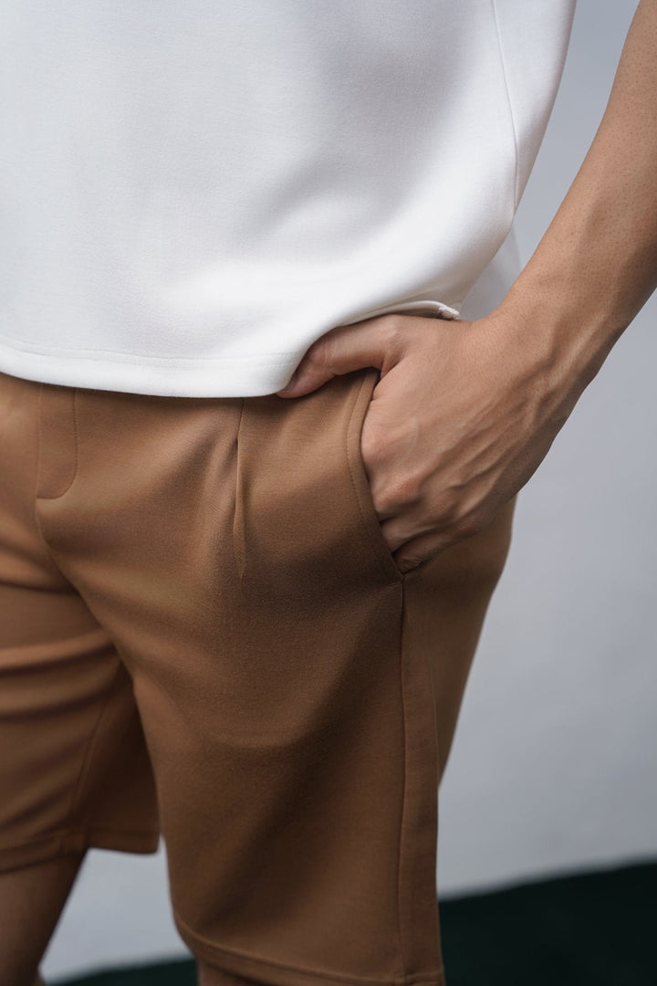 Design details: Pleated neoprene shorts with elasticated waistband and a drawcord.