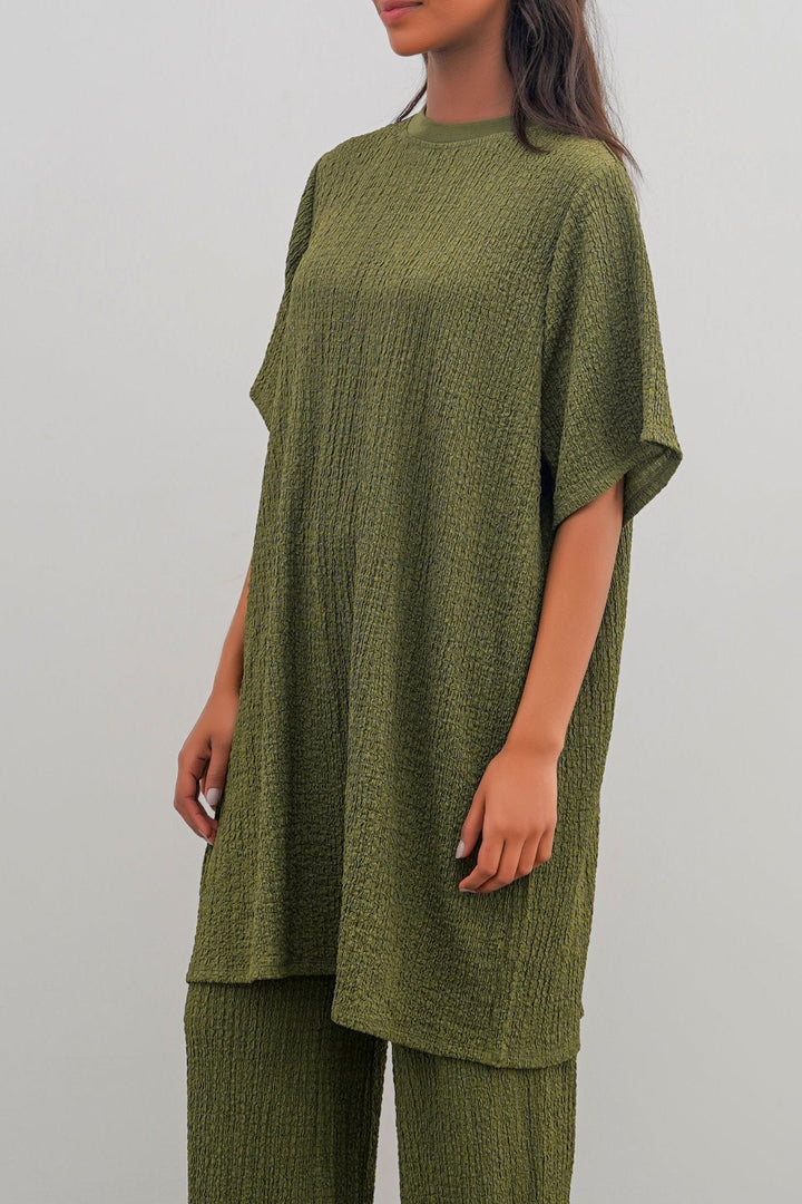 Design details: Long top with crewneck in a premium crinkle fabric that can be worn formally.