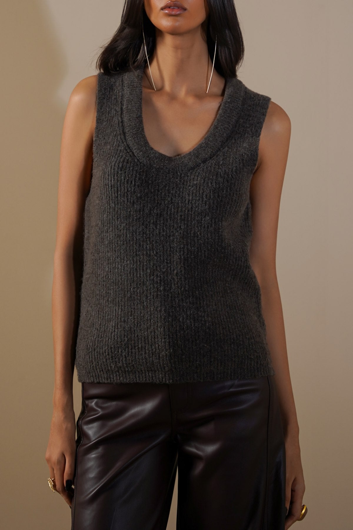 Design details: Ribbed vest with scooped neckline and collar detail.