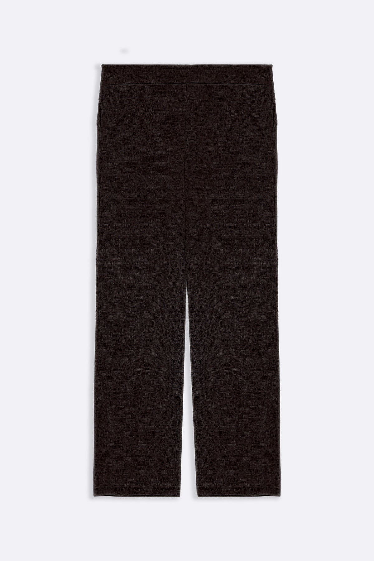 Design details: Textured straight fit pants with belted front and elasticated back waistband along with side pockets.