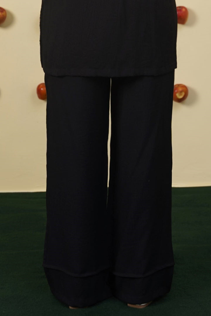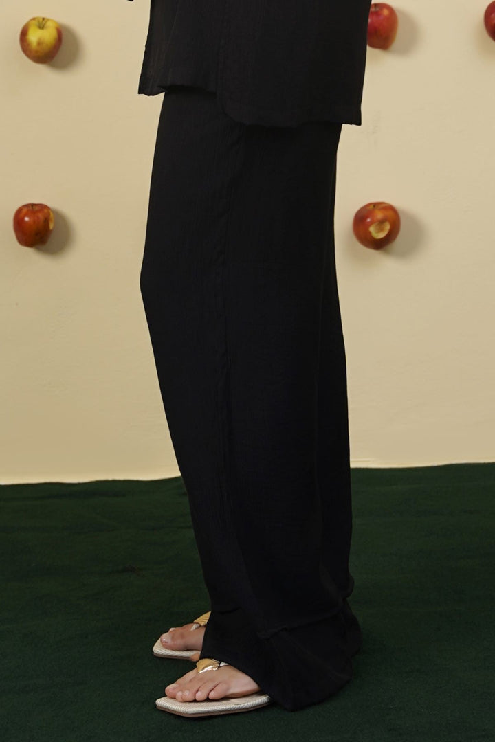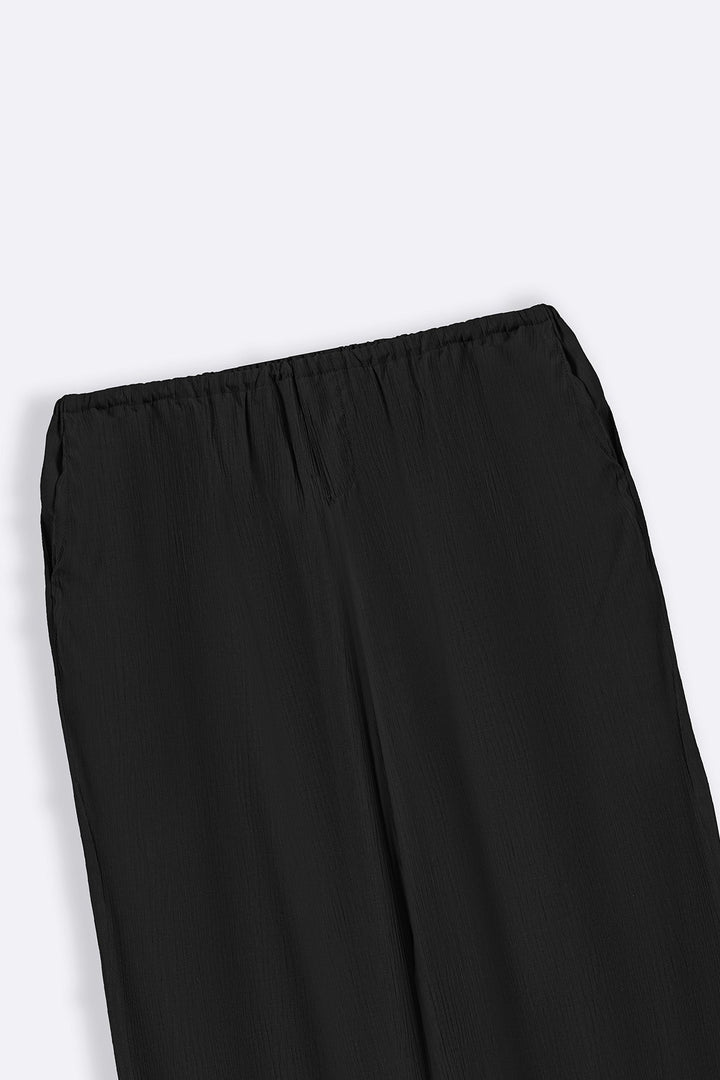 BLACK FLOWY TEXTURED PANTS