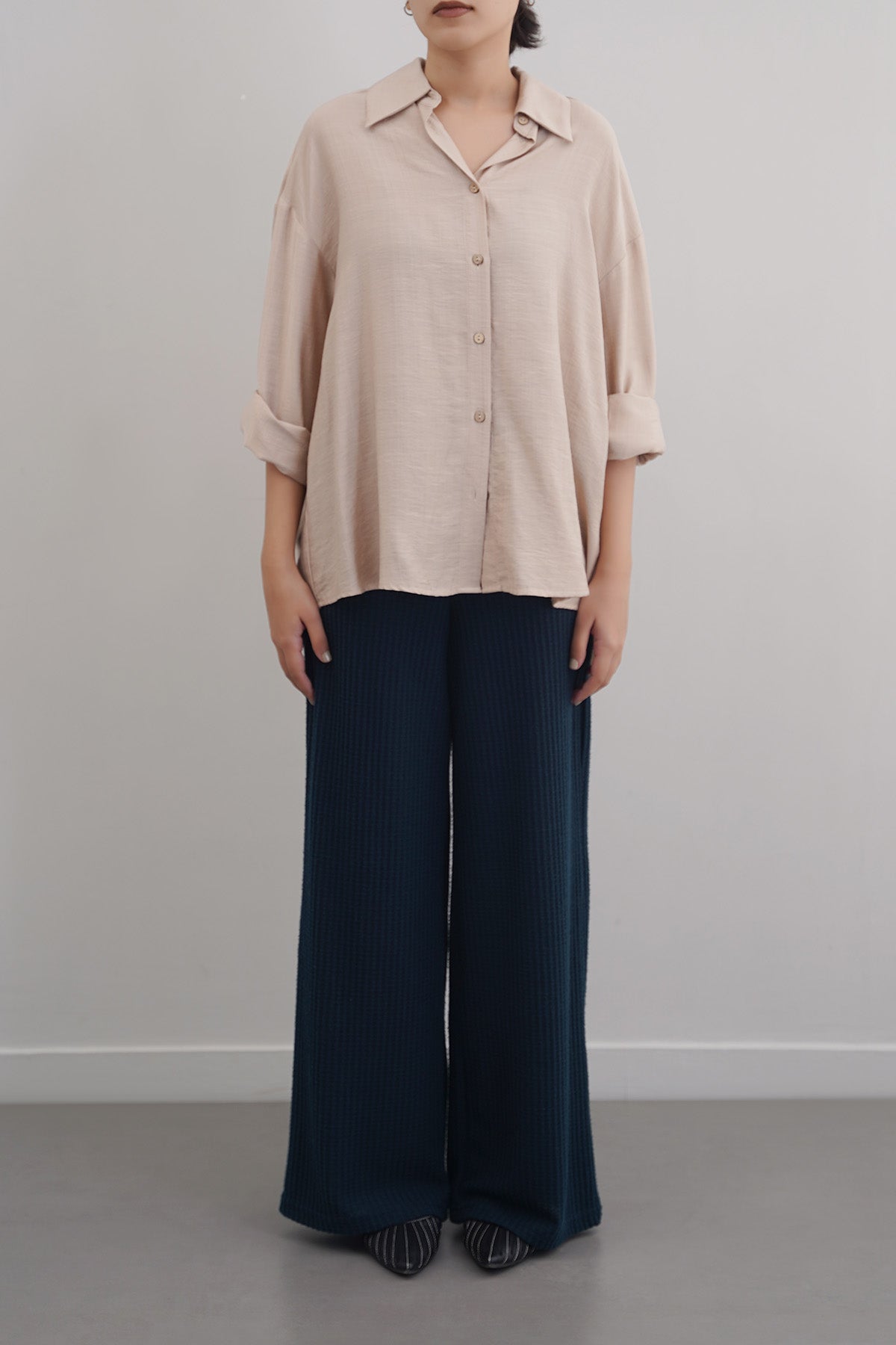 Design details: High waist trousers with an elastic waist band and straight leg.