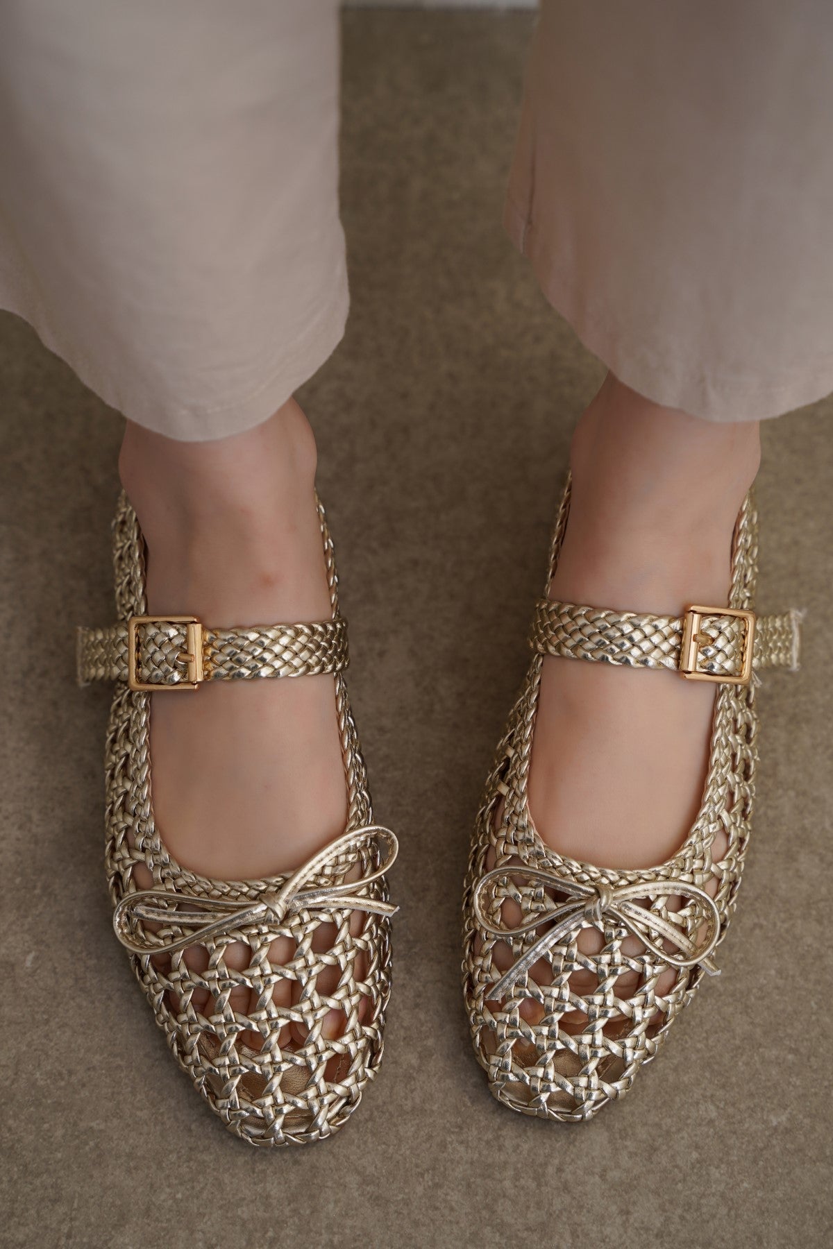 Woven Mary-Jane pumps with a pretty matching bow on top, soft insole and anti-slip outsole.
