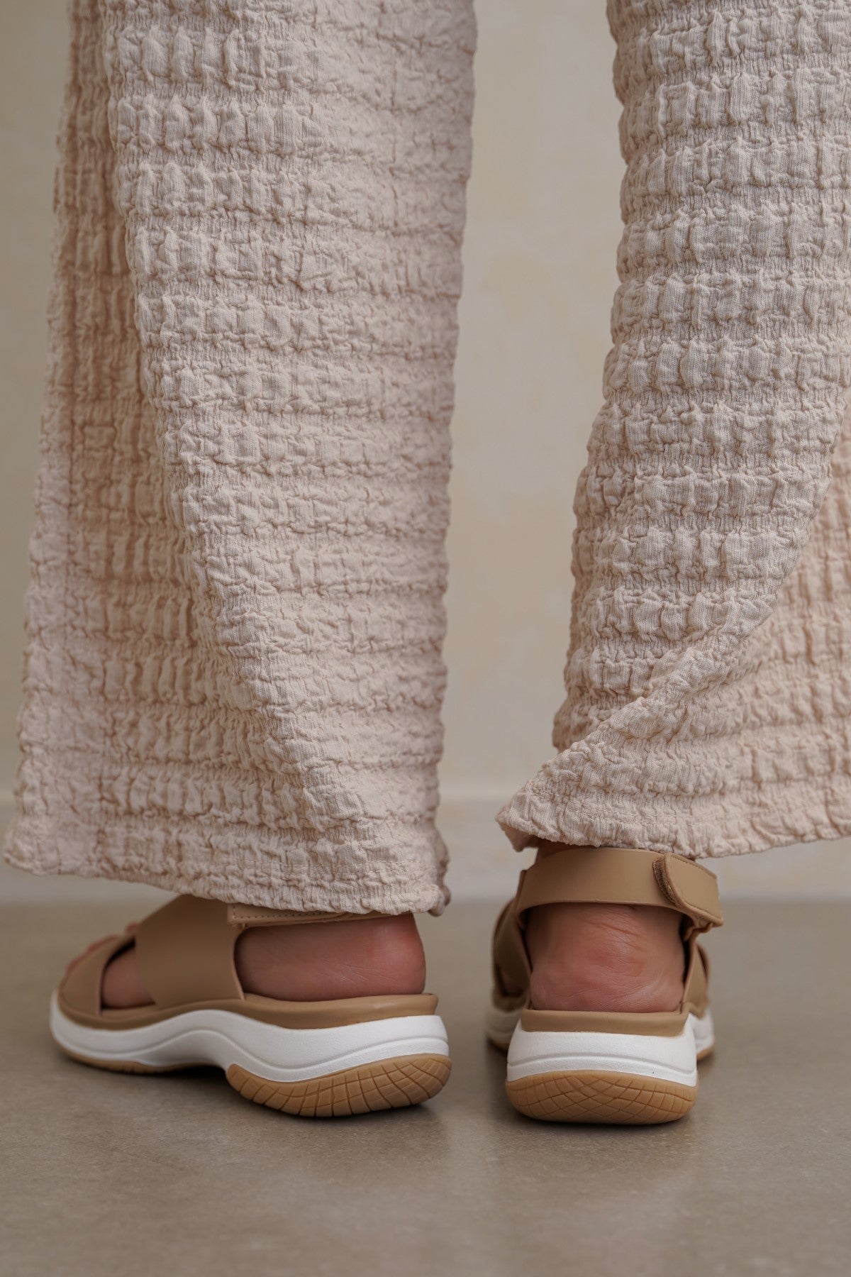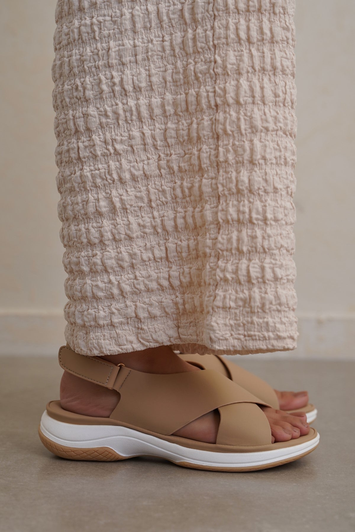 Super soft easy-to-wear mama sandals with criss cross straps, velcro on ankle strap and anti-slip outsole.