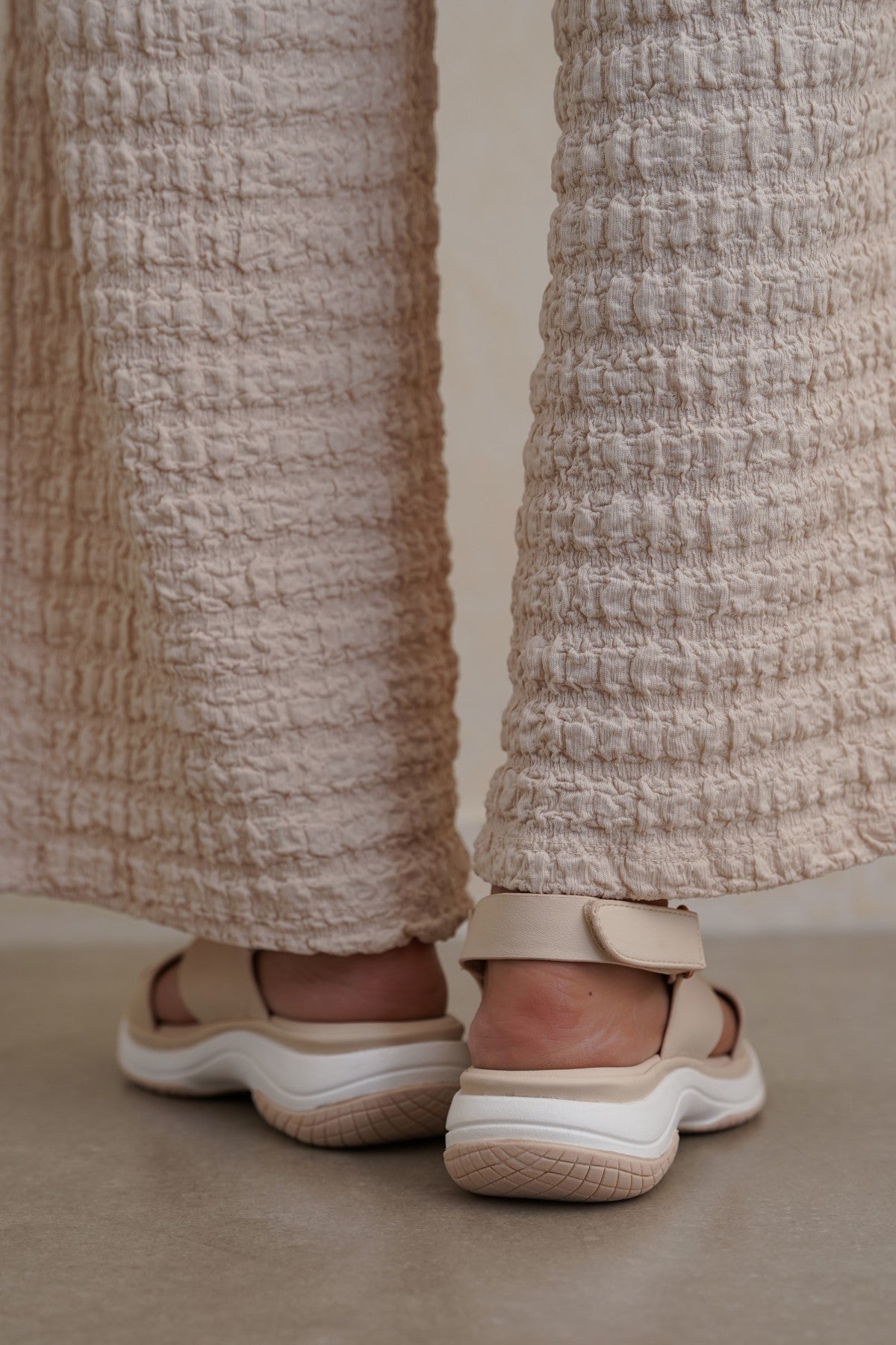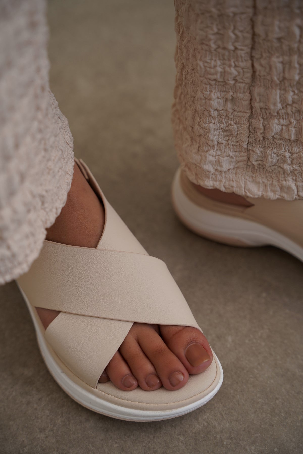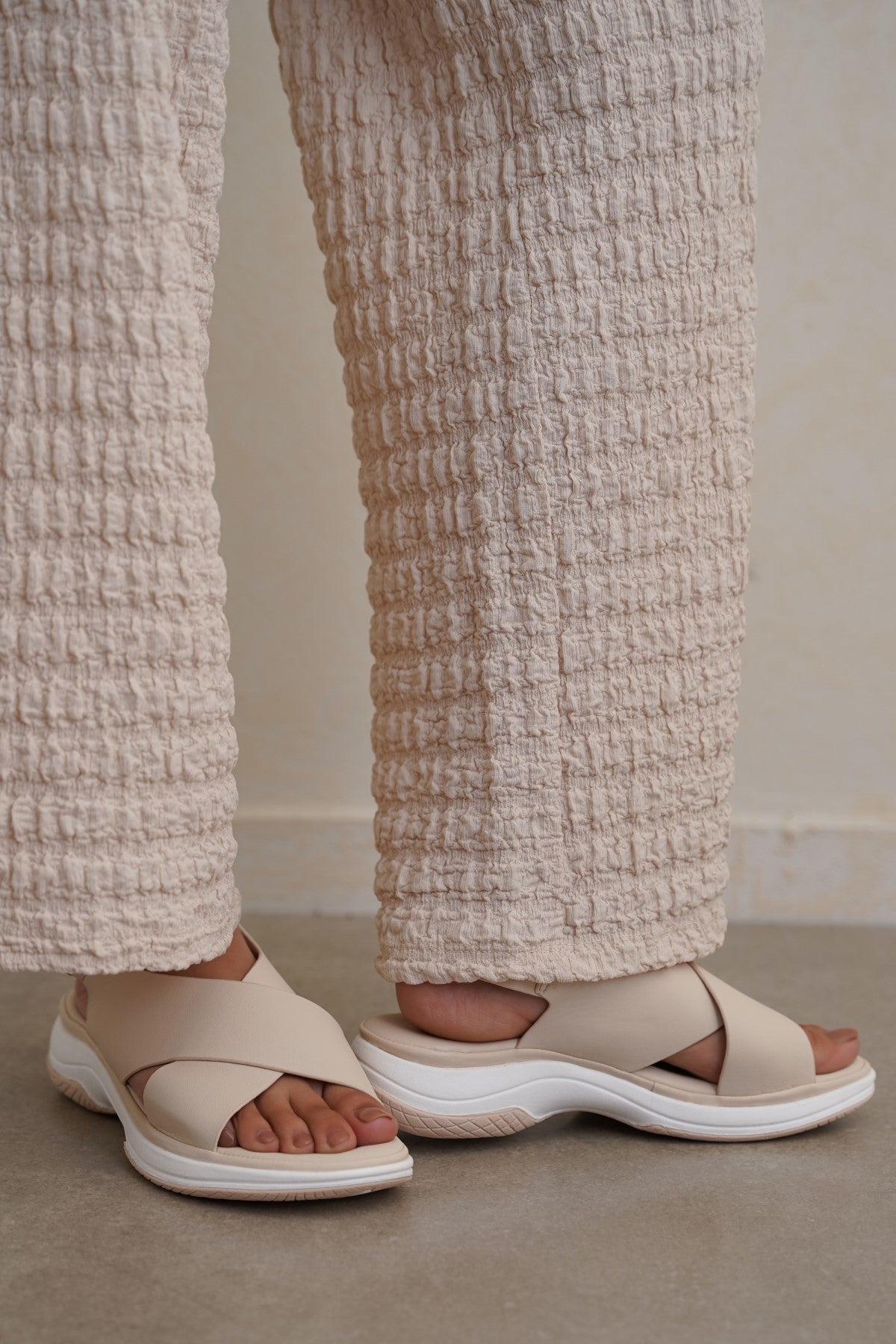 Super soft easy-to-wear mama sandals with criss cross straps, velcro on ankle strap and anti-slip outsole.
