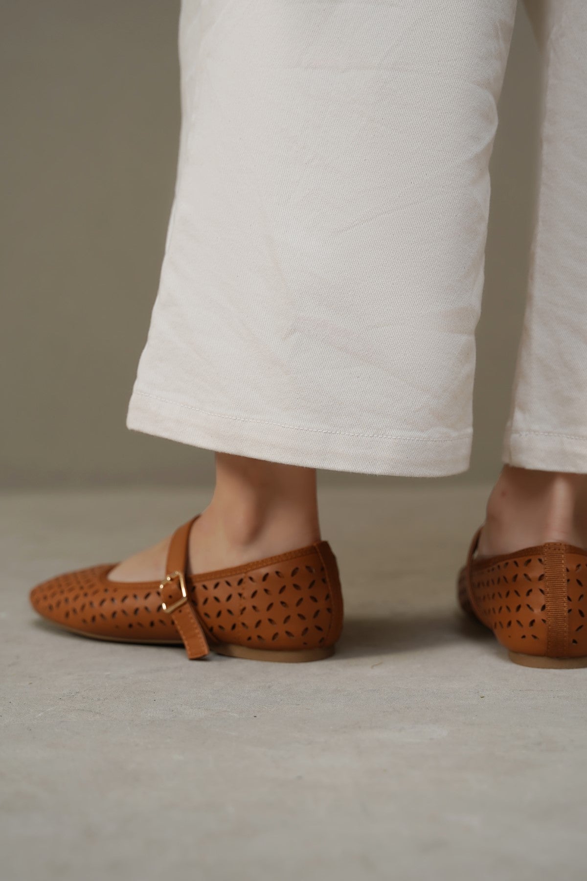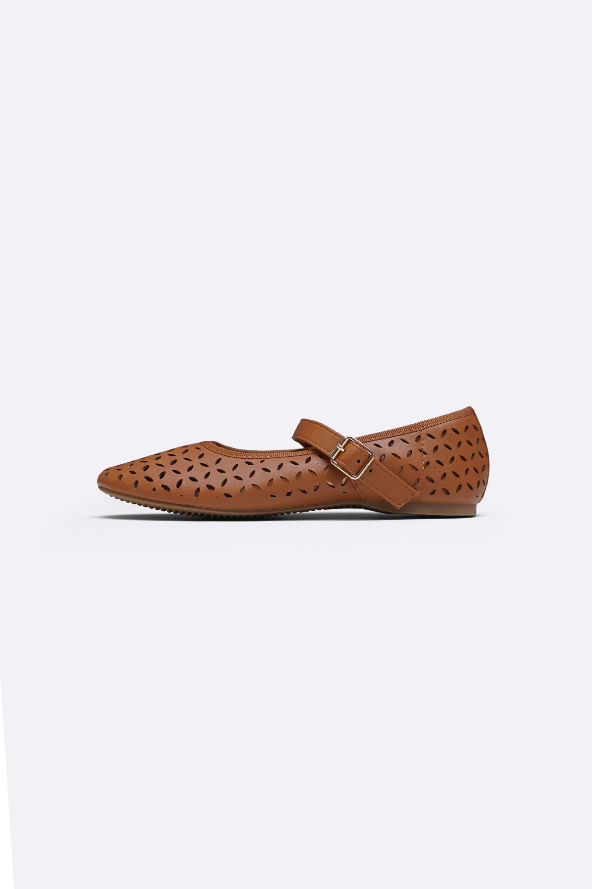 Soft lazer cut Mary-Jane pumps with soft cushion at the back counter, comfortable insole and anti-slip outsole.