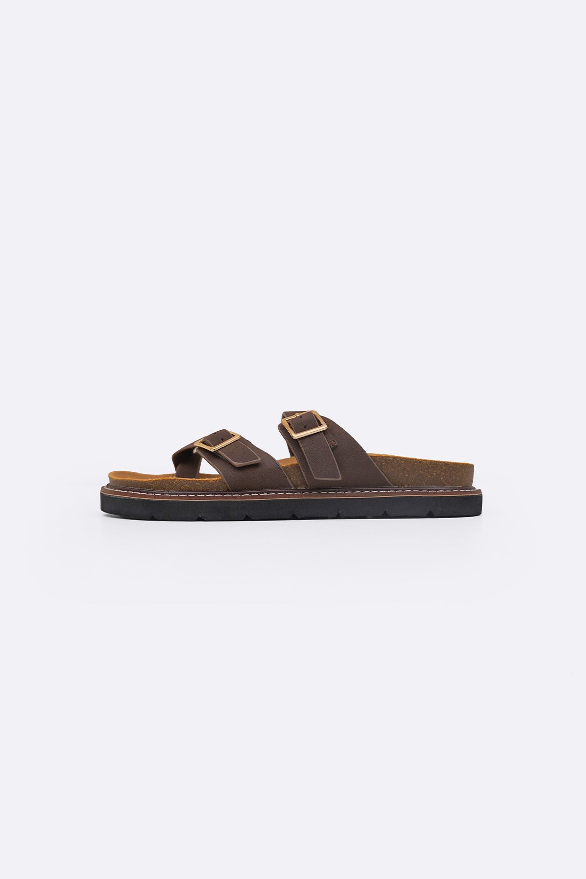 Everyday toe ring slides with double buckles for size adjustment and anti-slip outsole. The footbed is not cushioned.