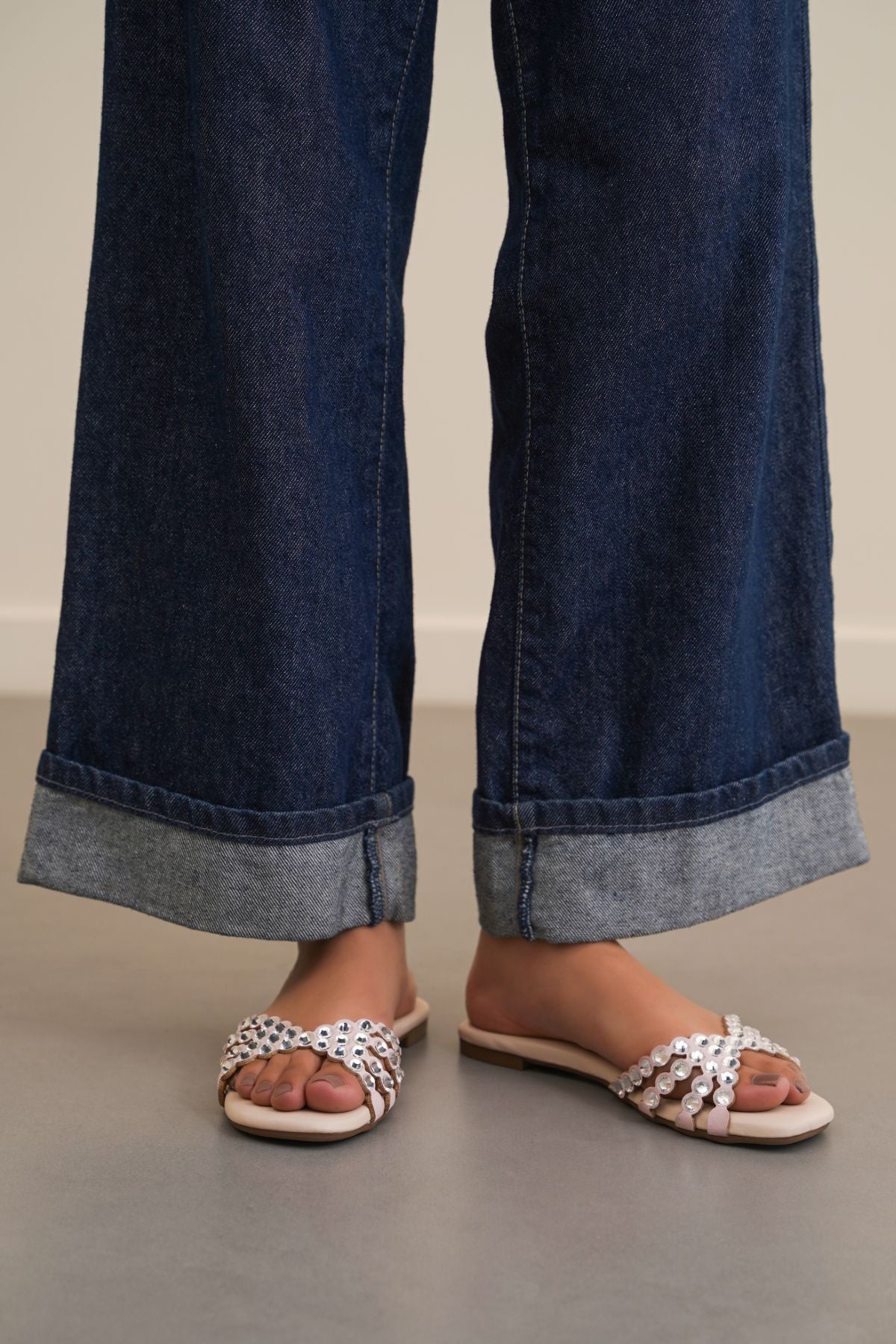 Soft crystal studded festive slides with cushioned insole for all day comfort along with anti-slip outsole.