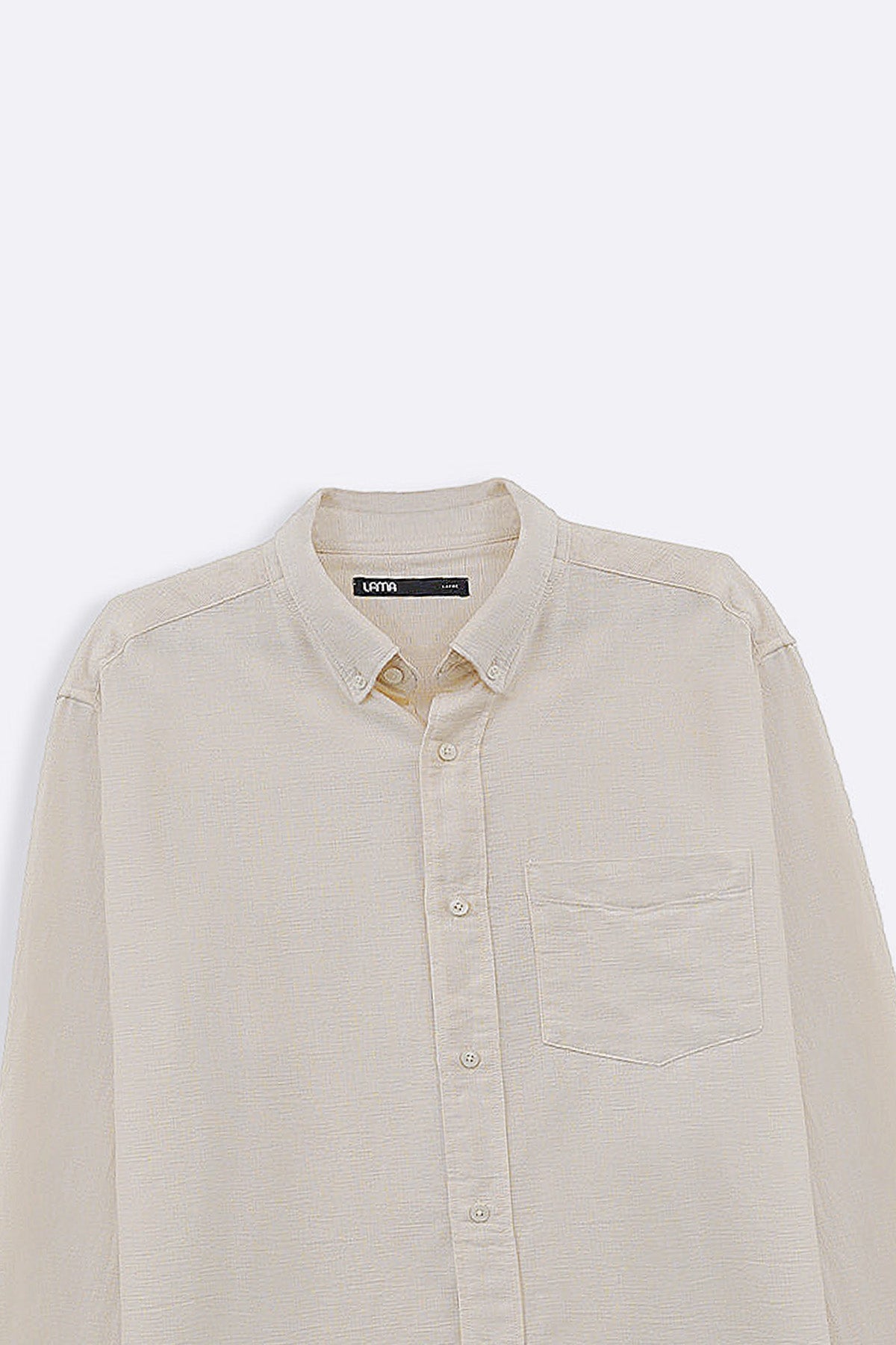 Design details: Dobby button down shirt with a chest patch pocket, collar and full sleeves with cuffs.