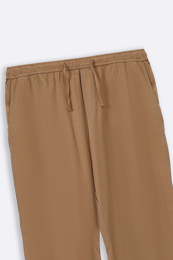 KHAKI LINEN BLEND RELAXED TROUSERS