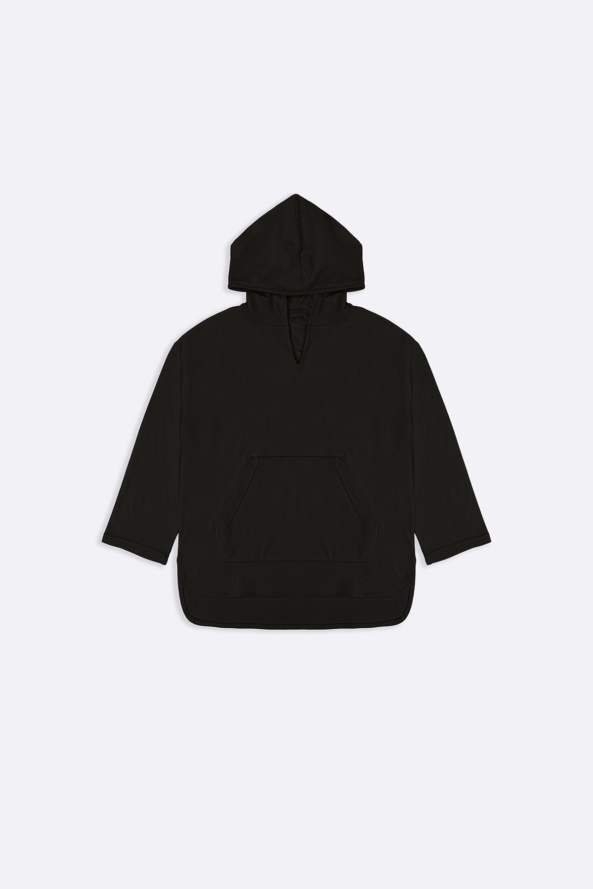 Design details: V-neck hoodie with long sleeves and a front kangaroo pocket, along with side vents.
