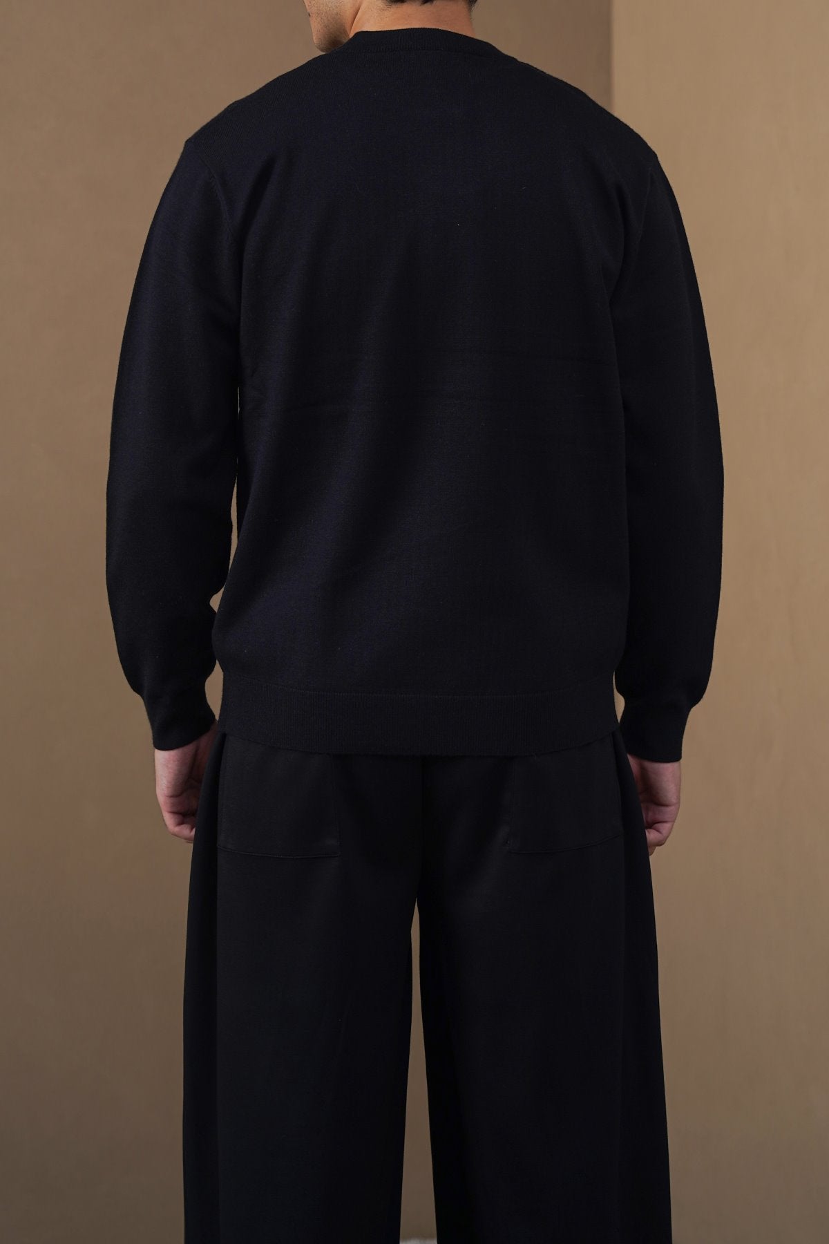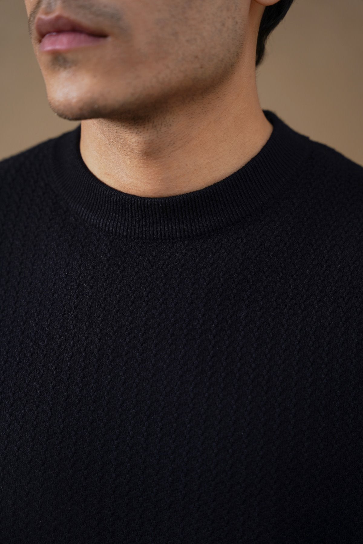 Design details: Textured sweater with a crew neck, long sleeves, and ribbed trims.