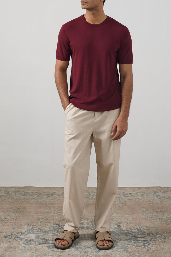 Design details: Crew neck t-shirt featuring ribbed detail on neck,cuffs and hem.